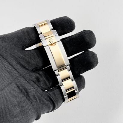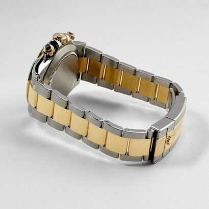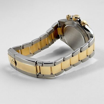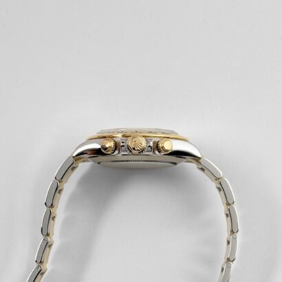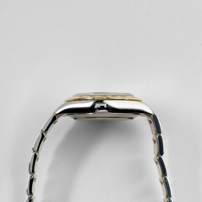 This remarkable timepiece seamlessly combines the luxurious allure of yellow gold with the strength and durability of steel, resulting in a harmonious blend of style and substance. The 40mm case, crafted from a captivating combination of yellow gold and steel, exudes a sophisticated charm that effortlessly catches the light. Luminescent hands and hour markers ensure legibility in all lighting, while the chronograph sub-dials offer precise timekeeping capabilities and adds a sporty touch and enhances the overall functionality of the watch.
