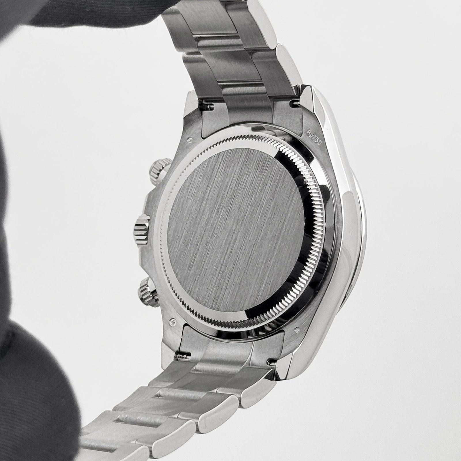 Fitted with a solid white gold Oyster bracelet featuring the Easylink extension system, the 126509 maintains a commanding yet balanced presence on the wrist. While the Daytona has long been admired for its symmetry and versatility, the white gold construction gives this reference added weight—both physically and in terms of collectability. Rolex’s use of precious metal elevates what is typically seen as a tool watch into the territory of full-fledged luxury timepieces.
