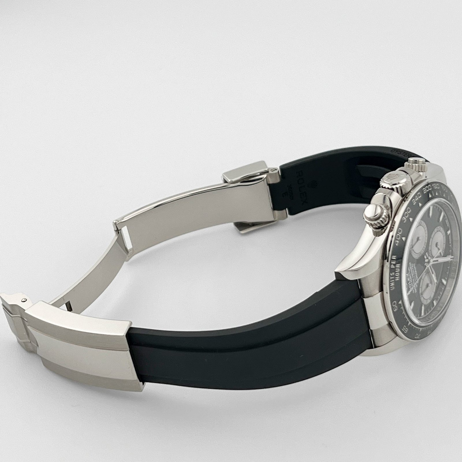 Paired with the Oysterflex bracelet, the watch combines the flexibility and comfort of high-performance elastomerwith the strength of a metal core, ensuring a secure and ergonomic fit. The Oysterlock clasp and Easylink extension system allow for easy adjustments, making it an ideal luxury sports chronograph for any occasion.