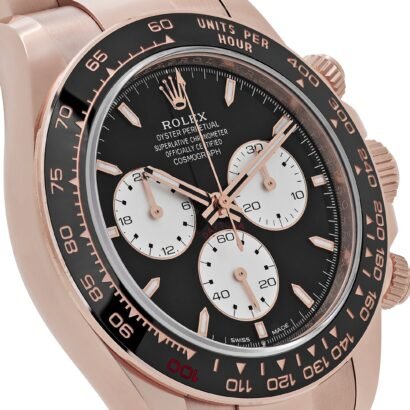 The rose gold Oyster bracelet, equipped with the Rolex-patented Oysterlock safety clasp and Easylink extension system, ensures both security and comfort, underscoring the brand’s meticulous attention to both form and function. The Daytona ‘Le Mans’ 126525 is more than a timepiece—it is an embodiment of speed, luxury, and precision, appealing to discerning collectors and motorsport aficionados alike.