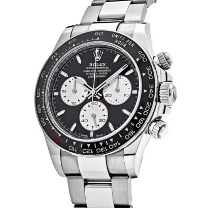 Created to commemorate the 100th anniversary of the 24 Hours of Le Mans, the Rolex Daytona 126529LN stands out as one of the most historically significant and visually distinctive modern Daytona references. Released in 2023, this white gold model revives key design codes from vintage Daytonas while integrating unique tributes to the world’s most iconic endurance race. It is the first time Rolex has introduced a reverse panda dial in precious metal with a ceramic bezel—a combination previously unavailable in the brand’s catalog.