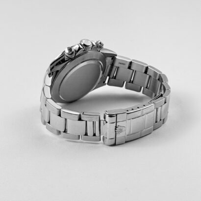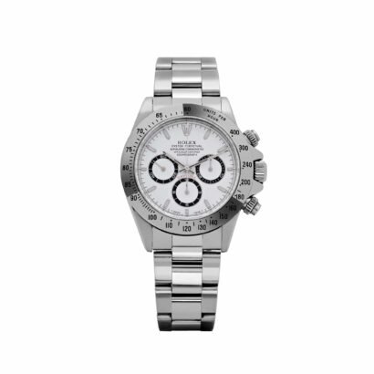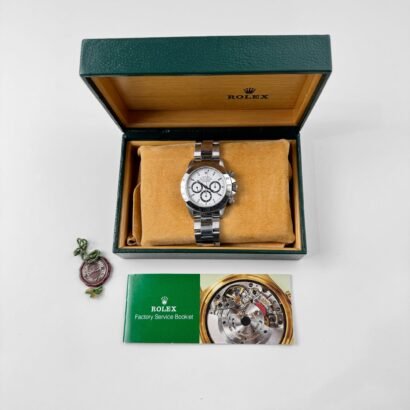 The Rolex Daytona 16520 is one of the most collectible steel chronographs ever produced, and this T serial example from 1996 captures a critical moment in the model’s evolution. Featuring a 40mm stainless steel case and smooth white dial, it retains the classic proportions of the era while offering modern durability with a sapphire crystal and screw-down pushers. The clean white dial is accented by black outer minute tracks, showcasing Rolex’s minimalist approach to high-function design during this generation.