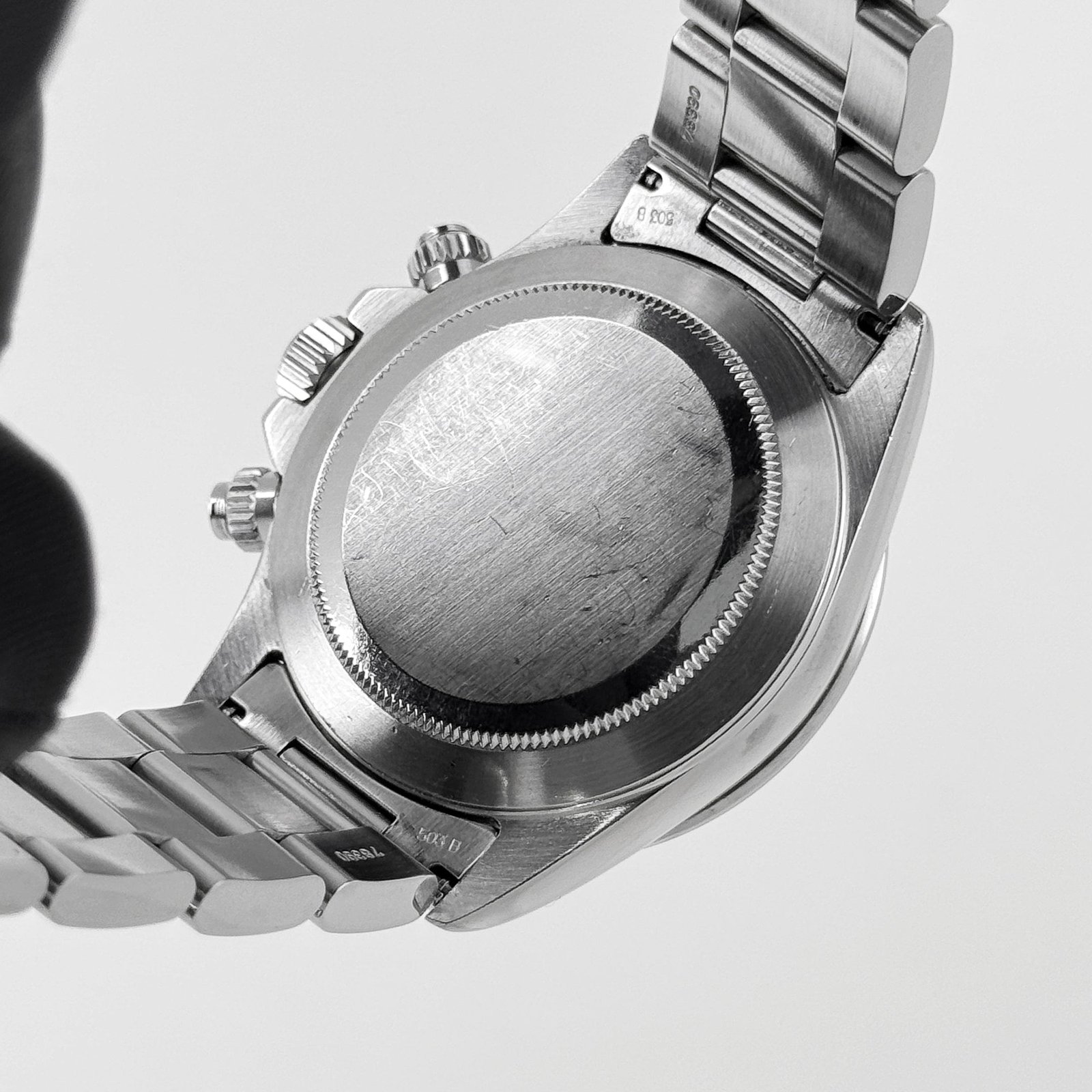 Paired with a solid-link oyster bracelet and engraved tachymeter bezel, the 16520 wears as confidently today as it did when it was first introduced. With its Zenith movement, crisp white dial, and transitional late-production T serial, this 1996 example reflects a moment of technical crossover before Rolex’s in-house 4130 movement debuted in 2000. It stands as one of the most important modern vintage Daytona references—sought after for its aesthetics, rarity, and place in the brand’s chronograph legacy.