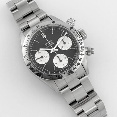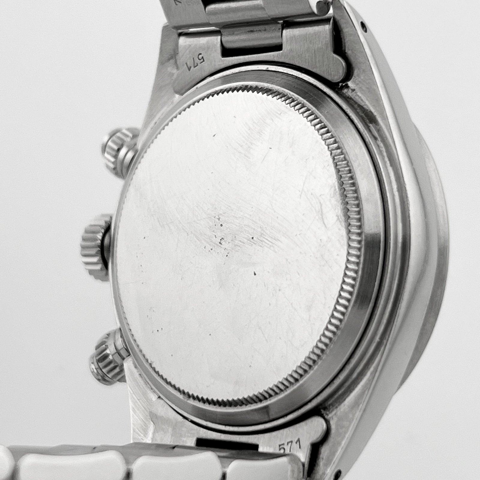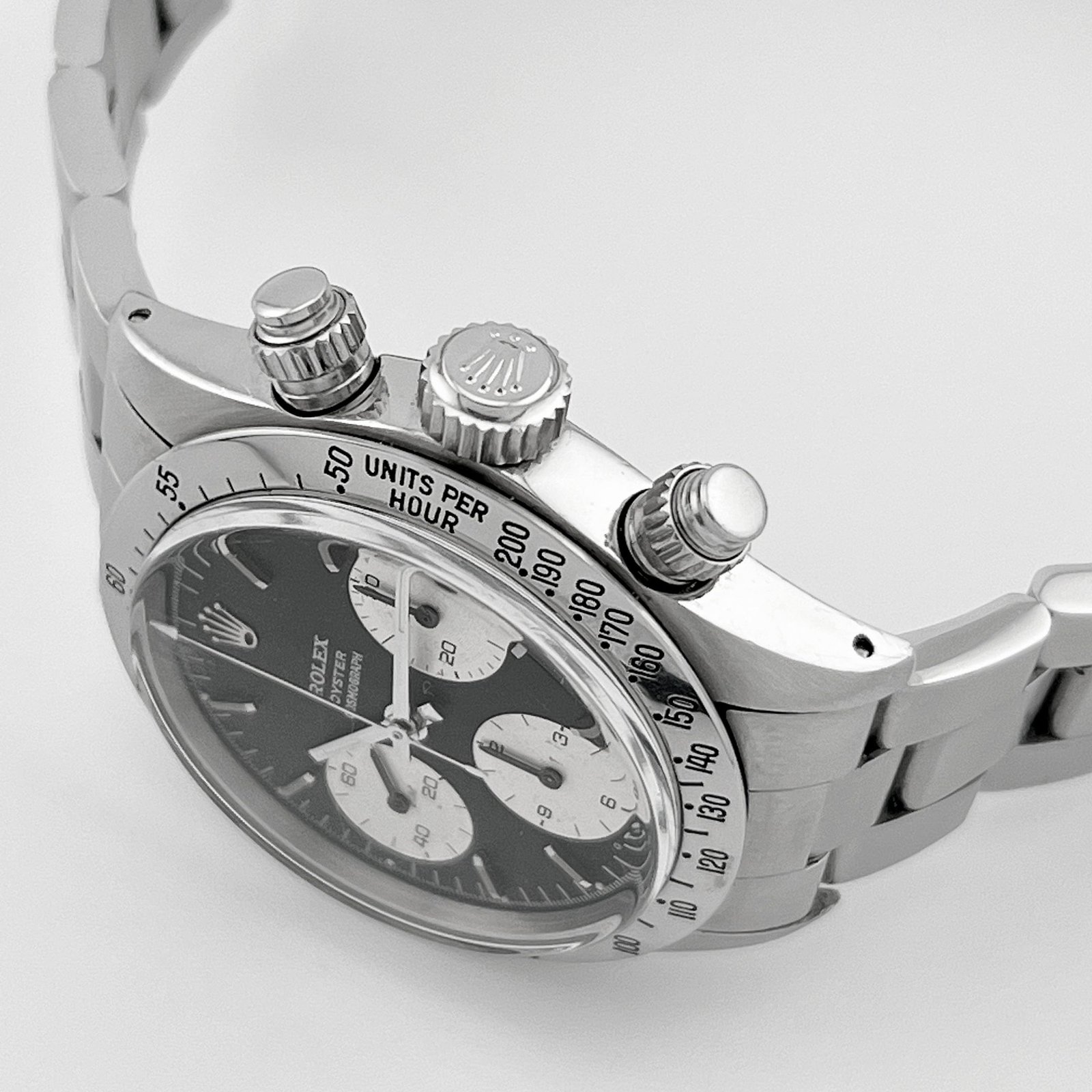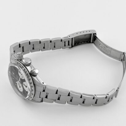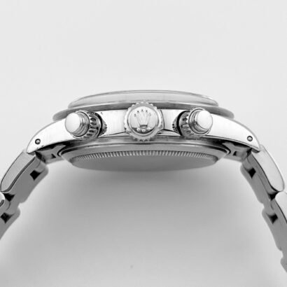 Paired with a steel Oyster bracelet, the 6265 delivers a harmonious blend of rugged functionality and vintage charm. Collectors prize this reference not only for its historical significance and aesthetic purity, but also for its rarity in well-preserved condition, especially with original dials and matching serials. The 6265 remains one of the most celebrated vintage Daytona references, representing the golden era of Rolex chronographs.