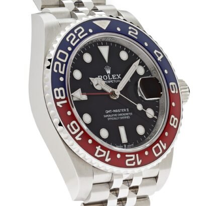 The Rolex GMT-Master II 126710BLRO, known as the ‘Pepsi’, is an enduring symbol of aviation heritage and global travel. Crafted from stainless steel, its 40mm Oyster case embodies Rolex’s signature durability and precision. The red and blue Cerachrom bezel, reminiscent of the original 1955 GMT-Master, represents daytime and nighttime hours, making it an instantly recognizable feature among collectors. The scratch-resistant ceramic bezel, with its engraved 24-hour scale, allows travelers to track multiple time zones effortlessly.
