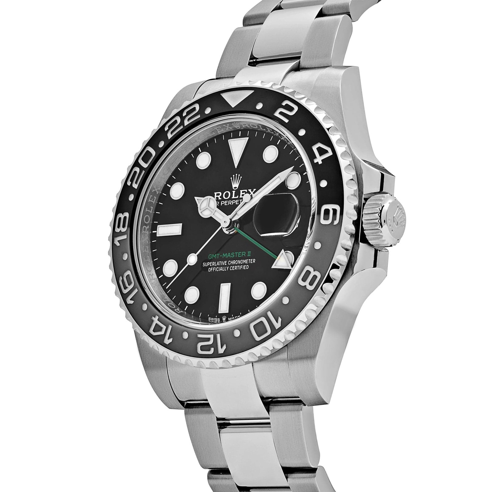 Equipped with the signature GMT hand and a bi-directional 24-hour bezel, the 126710GRNR enables seamless tracking of two time zones simultaneously, making it indispensable for global travelers. The sleek, high-contrast black dial ensures optimal readability, and its luminous markers guarantee legibility in low-light conditions. Complementing this modern look, the oyster bracelet, a hallmark of Rolex design, offers superior comfort and an additional layer of timeless elegance to this highly versatile watch.