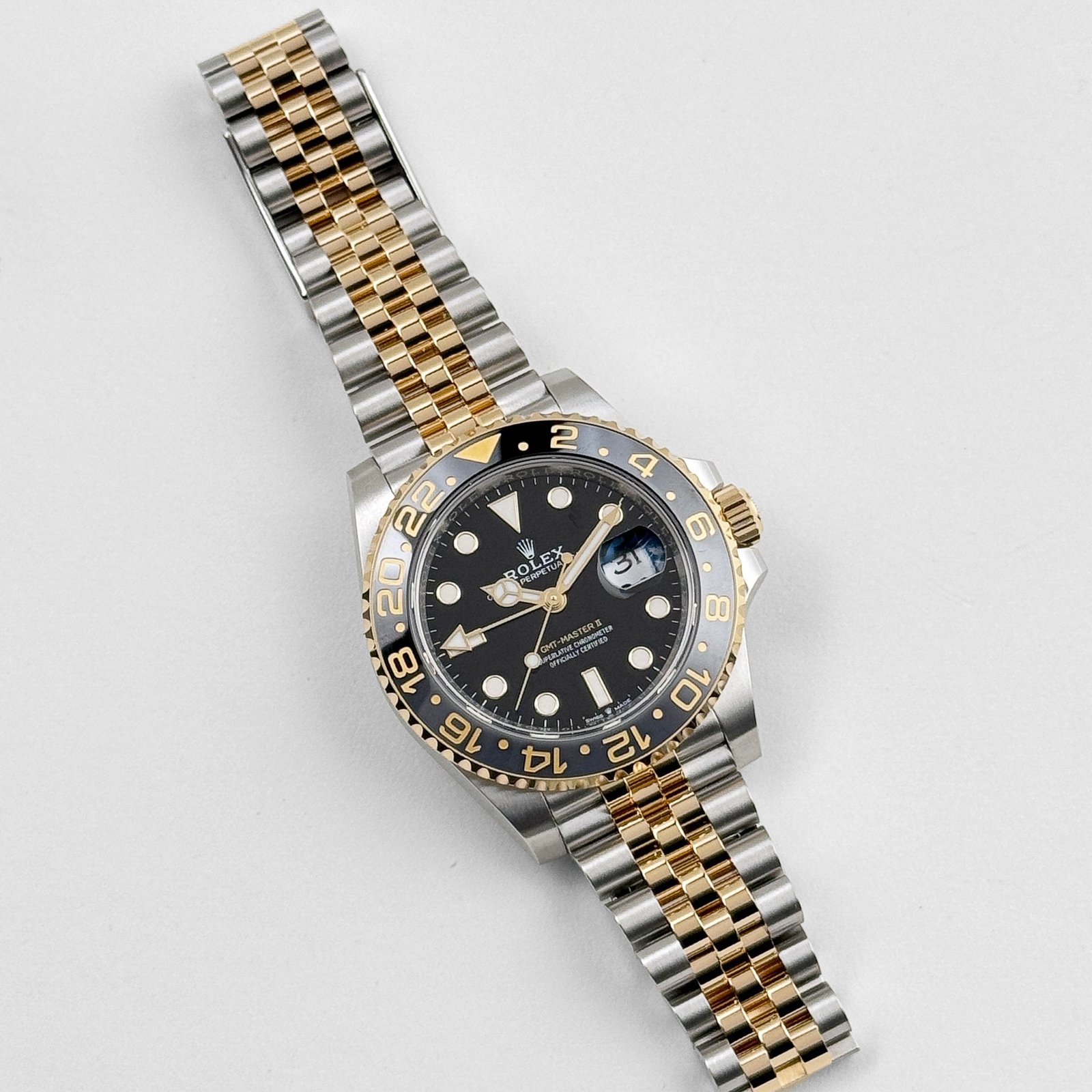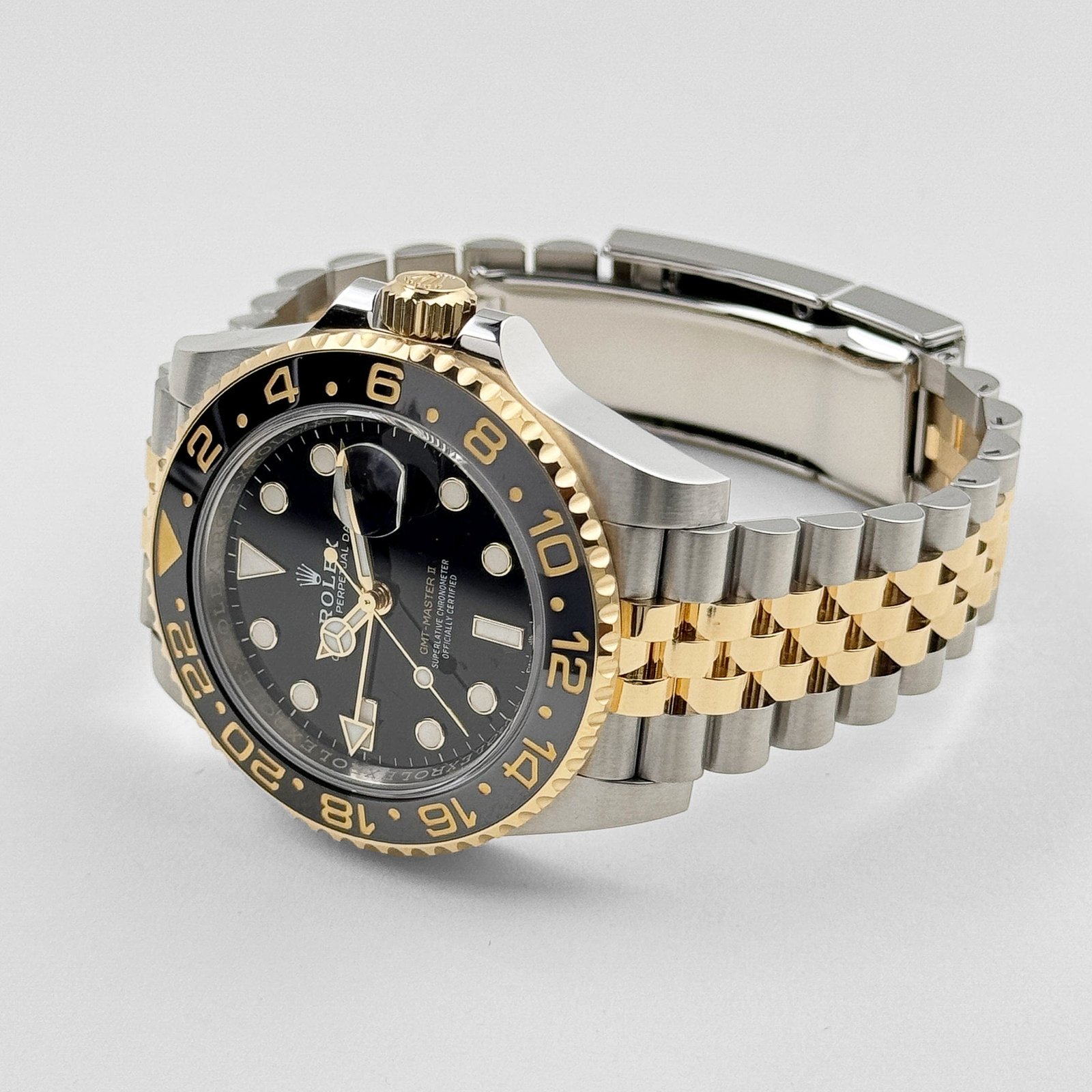 Crafted with meticulous precision, the 40mm case showcases the seamless integration of steel and yellow gold, creating a harmonious contrast that exudes sophistication. The iconic black dial serves as a captivating backdrop for the luminous hands and hour markers, ensuring excellent legibility in any lighting condition. What sets this GMT-Master II apart is the signature black and green ceramic bezel, which adds a touch of vibrancy and character to the overall design. The 24-hour scale allows for tracking multiple time zones, making it the perfect companion for frequent travelers and global adventurers.