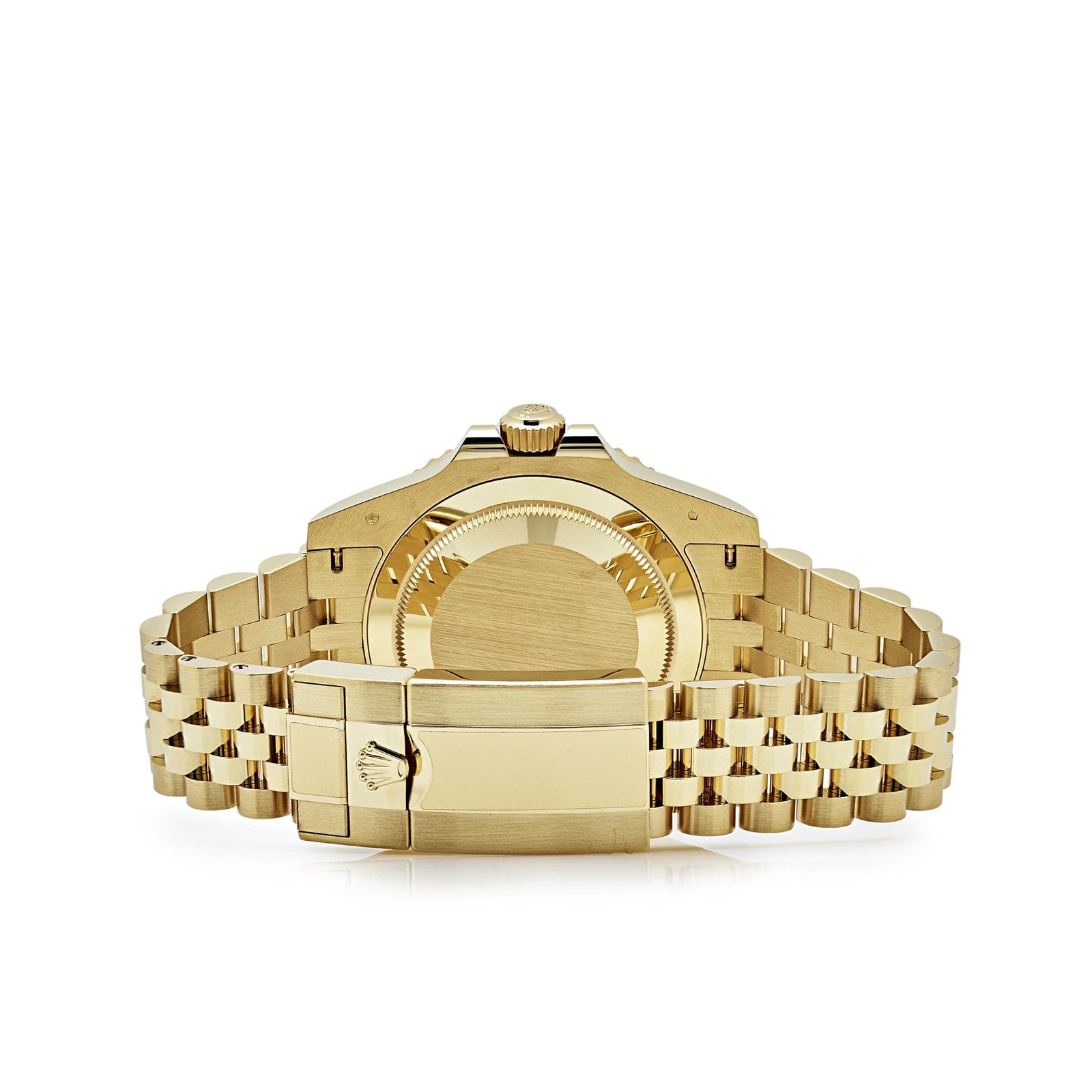 The GMT-Master II offers a range of practical functions, including a center hour, minute, and seconds hands, a 24-hour display, and a second-time zone with independent rapid-setting of the hour hand. Additionally, it features an instantaneous date display and stop-seconds for precise time setting. Completing the luxurious ensemble is the yellow gold jubilee bracelet with a folding Oysterlock safety clasp, ensuring a comfortable and secure fit on the wrist.