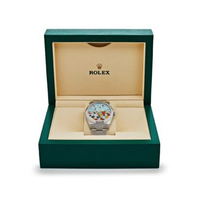 Whether chosen as a daily companion or a collector’s statement piece, the Oyster Perpetual 126000 ‘Celebration Motif’ Dial is a testament to Rolex’s ability to combine timeless craftsmanship with contemporary creativity. It’s a watch that redefines elegance while celebrating individuality, making it an essential addition to any watch enthusiast’s collection.