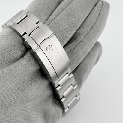 The watch is paired with the iconic Oyster bracelet, crafted from solid stainless steel. Renowned for its durability and comfort, the bracelet’s three-piece link design offers a perfect balance of form and function. The Oysterclasp ensures a secure and adjustable fit, providing unparalleled ease of wear, whether on a busy day or at an elegant event.