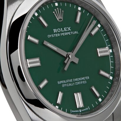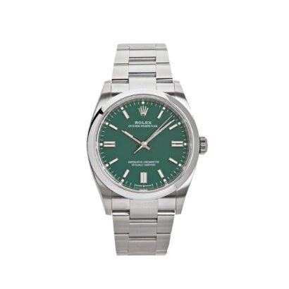 Elevate your wrist game with the Rolex Oyster Perpetual 36mm Green Dial 126000. This exquisite timepiece combines the timeless elegance of Rolex with a vibrant burst of color that will surely turn heads.