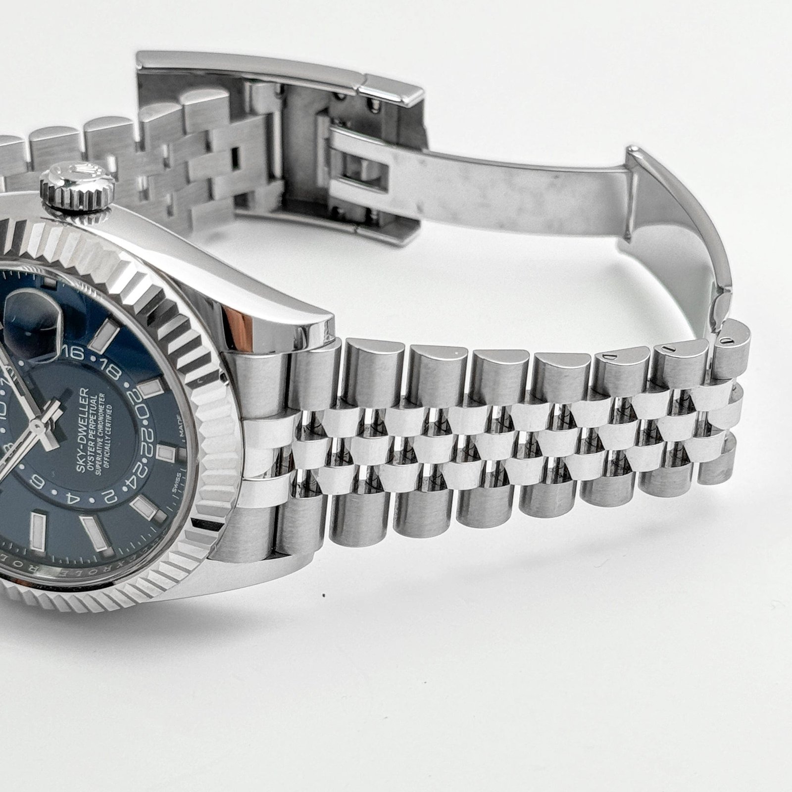 As a true companion for global travelers, the Sky-Dweller boasts a second time zone and an annual calendar, ensuring you stay on top of your schedule. The steel jubilee bracelet offers both comfort and a timeless aesthetic. The folding clasp ensures a secure fit on the wrist.