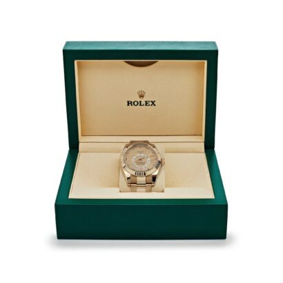 With a power reserve of approximately 72 hours, this timepiece can keep up with your busy schedule without missing a beat. This pre-owned Sky-Dweller is in great condition and comes with its original box and papers, attesting to its authenticity and provenance. Elevate your collection with the Rolex Sky-Dweller 326938—a perfect synthesis of form and function for the modern explorer.