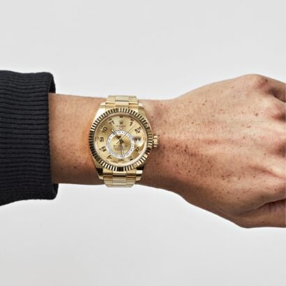 As a true companion for global travelers, the Sky-Dweller boasts a second time zone and an annual calendar, ensuring you stay on top of your schedule. The oyster bracelet offers both comfort and a timeless aesthetic. The folding clasp ensures a secure fit on the wrist. Driven by the self-winding Rolex Caliber 9001, the Sky-Dweller guarantees exceptional accuracy and reliability.
