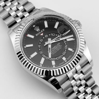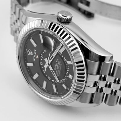 The five-link Jubilee bracelet enhances the watch’s versatility, combining sport-luxury presence with superior comfort. It features an Oysterclasp with Easylink 5mm extension for quick micro-adjustments and hidden ceramic inserts for lasting flexibility. The Sky-Dweller 336934 in this configuration offers a seamless mix of world-time functionality, mechanical sophistication, and contemporary Rolex styling—ideal for travelers who want practical complications without sacrificing everyday elegance.