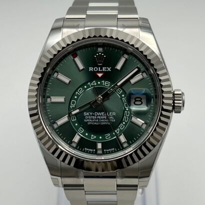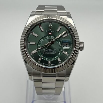 Paired with the iconic Oyster bracelet, known for its strength and comfort, this Sky-Dweller is built to perform in any setting, boasting 100 meters of water resistance. Powered by the advanced Caliber 9002, it offers a robust 72-hour power reserve and unparalleled precision, making it the ultimate companion for life’s adventures.