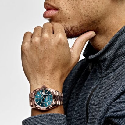 What sets this reference apart is its pairing with the elegant Jubilee bracelet, a first for the Sky-Dweller collection. Renowned for its comfort and sophistication, the five-link bracelet adds a touch of refinement to the watch’s overall aesthetic. Crafted from Everose gold, the Jubilee bracelet is equipped with a concealed Crownclasp for a seamless look and offers effortless adjustability, ensuring a secure and comfortable fit for any wrist.
