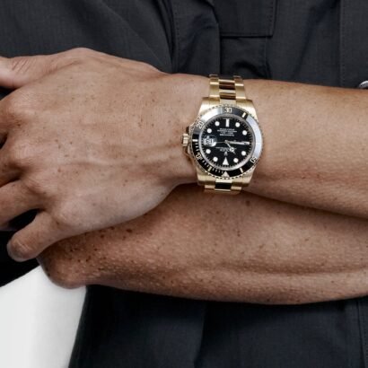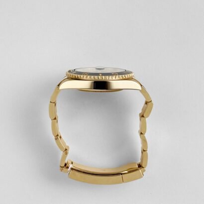 The watch is paired with an 18k yellow gold Oyster bracelet, celebrated for its robust construction and comfort. The bracelet features Rolex’s innovative Glidelock extension system, allowing precise adjustments without tools, ensuring a secure fit over wetsuits or during everyday wear.