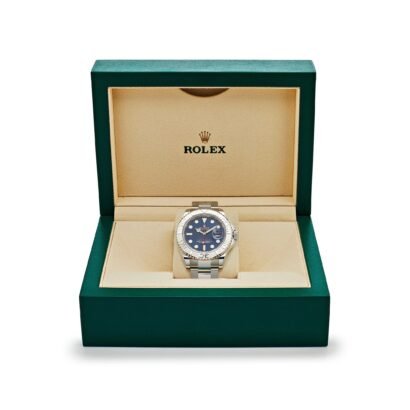 Powered by the caliber 3235, a self-winding mechanical movement developed by Rolex, this timepiece boasts a power reserve of approximately 70 hours. The reliability of the Yacht-Master is further emphasized by its water resistance of up to 100 meters, ensuring it stands up to the challenges of the open water.