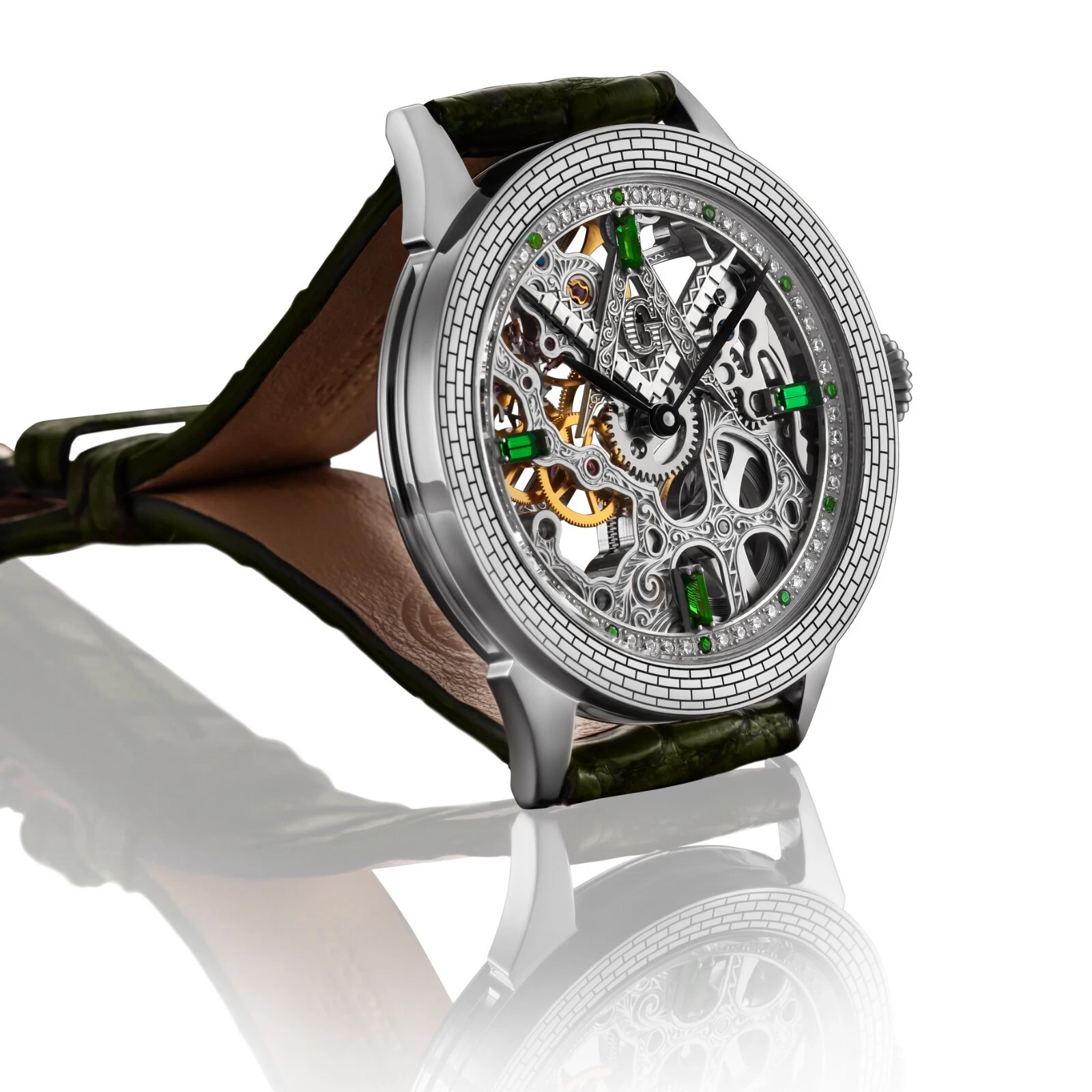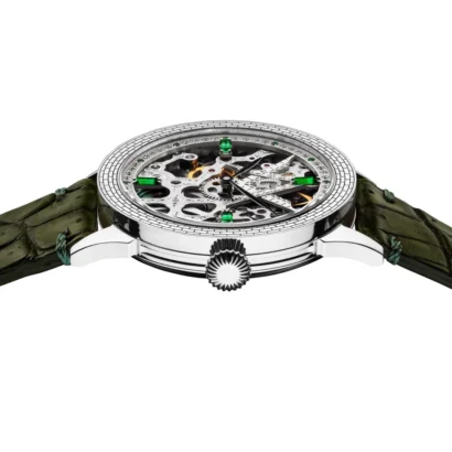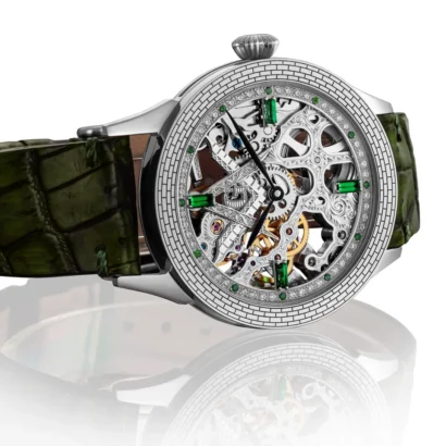 The Flagman & Co. Mystery Emerald Men’s Watch is a luxurious timepiece that combines traditional craftsmanship with modern elegance. Featuring a 43mm ultra-durable case and a 22mm strap, this mechanical watch is powered by a manual winding Cal 36 movement with 17 ruby jewels, ensuring precise and reliable timekeeping. The mineral crystal protects the dial, with an optional sapphire crystal upgrade available for added durability. With a 13mm case thickness and minimal water resistance, it is designed for style-conscious wearers. Each watch comes complete with an elegant wooden watch box, an exclusive woven-pattern bracelet, and a 2-year warranty, making it a perfect gift or collectible piece.