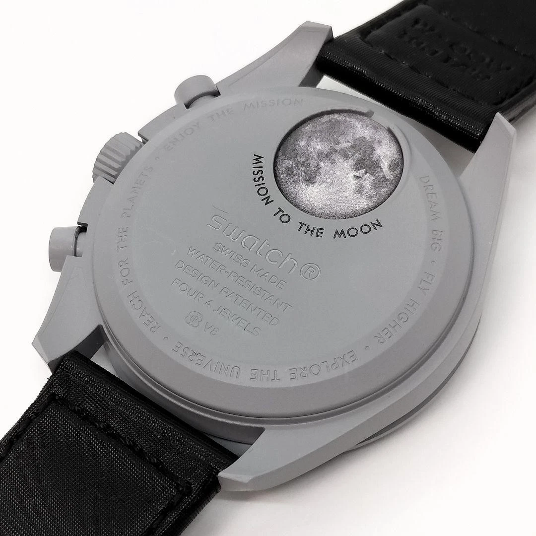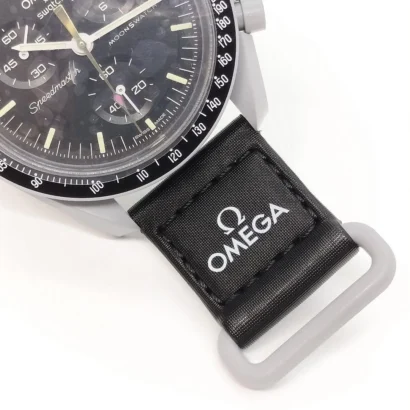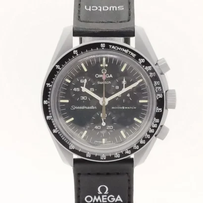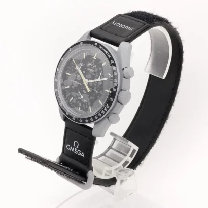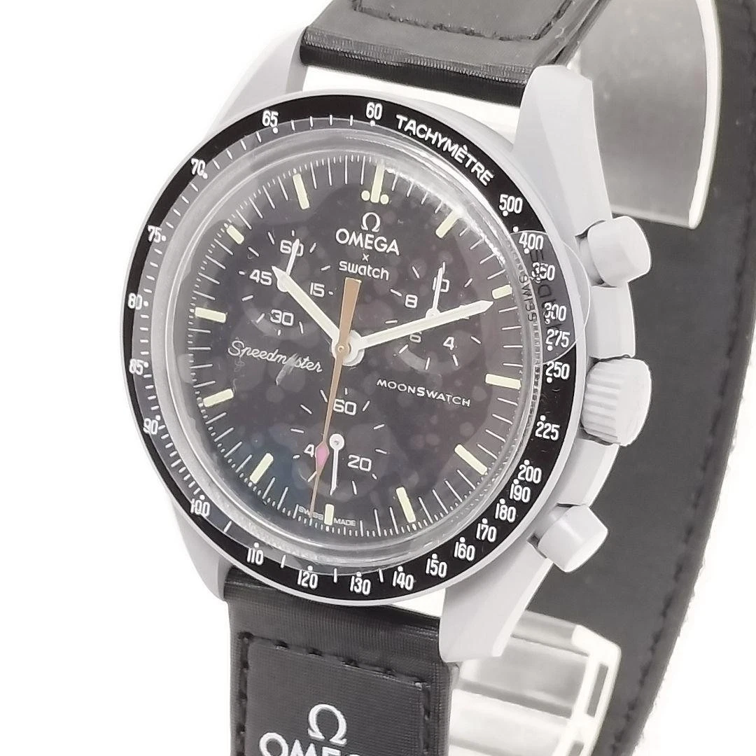 The Swatch OMEGA Speedmaster unisex wristwatch blends casual style with reliable craftsmanship. Featuring a polished gold ceramic case and a black dial with a classic 12-hour analog display, this 2023 model is powered by a mechanical automatic movement. The black canvas band offers a comfortable and durable fit, perfect for everyday wear. Water-resistant up to 30 meters, this timepiece is suitable for daily use with added style. It comes complete with original packaging and includes a 1-year manufacturer warranty, making it a great choice for those who appreciate a casual yet sophisticated watch.
