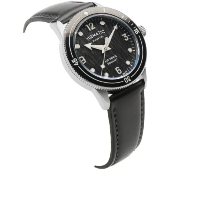 The Model 1411121 Men’s Automatic Watch is a robust and elegant timepiece crafted for precision and durability. It features a 39mm round 316L stainless steel case with a screw-down engraved caseback and a uni-directional black tungsten bezel for added resilience. The black analog dial showcases silvertone hands, lume markers, Arabic numerals, and dots for clear readability. Powered by a Swiss automatic Sellita SW 200-1 movement with 28,800 vibrations per hour and a 41-hour power reserve, this watch delivers reliable performance. Protected by a domed sapphire crystal with internal and external anti-reflective coating, it is paired with a black Apple Skin strap and 316L stainless steel tang clasp.