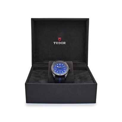 Its vivid deep blue domed dial is framed by high-contrast luminous snowflake hands and applied baton markers filled with Super-LumiNova—offering maximum clarity both day and night. The overall aesthetic maintains Tudor’s signature retro-inspired design language while bonded with modern material engineering for a contemporary twist.