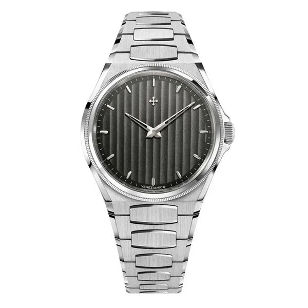 The Venezianico Arsenale40 6221503C is a luxury men’s automatic watch that combines sophisticated Italian design with Swiss precision. The 40mm round stainless steel case features a polished finish in silver, exuding elegance and versatility. Powered by a Swiss mechanical (automatic) movement, this watch ensures precise timekeeping and features a self-winding mechanism. The sapphire crystal offers superior scratch resistance, while the 200 m (20 ATM) water resistance makes it suitable for various water activities. The push/pull crown and screw-down crown ensure durability, while the central seconds hand and date indicator add both functionality and style. The watch is handmade in Italy, demonstrating a commitment to craftsmanship, and comes in a limited edition series. Delivered with original box, papers, and a manual/booklet, this timepiece is an excellent addition to any luxury collection.
