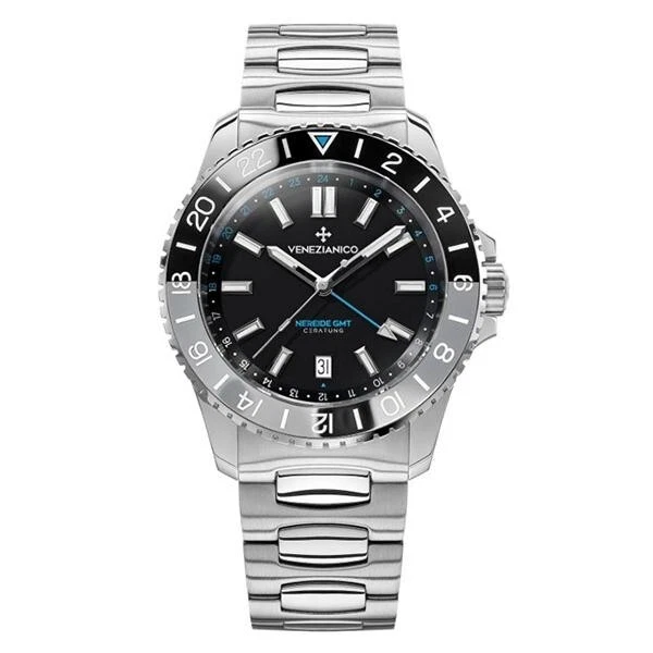 The Venezianico Nereide GMT Ceratung is a meticulously handcrafted Italian luxury dive watch that masterfully blends robust functionality with elegant design, featuring a 42mm stainless steel case with a screw-down crown providing a substantial 200 meters of water resistance. Its striking black dial is equipped with a practical GMT function for tracking a second time zone, a date indicator, and a central seconds hand, all protected by a durable sapphire crystal for optimal clarity and scratch resistance. Powered by a precise self-winding Swiss automatic movement and presented as a limited edition complete with box and papers directly from Japan, this timepiece is a testament to fine European craftsmanship tailored for the discerning global traveler.