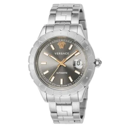 The Versace Helenium men’s wristwatch offers a sophisticated blend of classic luxury and modern craftsmanship. This polished 42 mm stainless steel round case features a fixed silver bezel and a silver dial with luminous baton indexes and hands for optimal readability. Powered by a Swiss automatic mechanical movement, it includes a date indicator and is protected by a scratch-resistant sapphire crystal. With 50 meters water resistance and a sturdy stainless steel bracelet secured by a fold-over push-button deployant clasp, this timepiece is perfect for dress/formal occasions. Manufactured from 2020 onward, the watch comes complete with original packaging, manual, and a polished case finish.